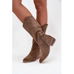 Dámské kozačky ve western stylu na nízkém podpatku Cherrie – tmavě béžové, eko zamsz
