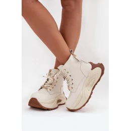 Dámské kožené boty GOE – světle béžové, zateplené, na platformě