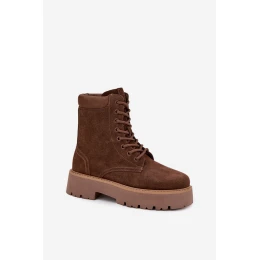 Stylové dámské boty v provedení worker, vyrobené z přírodní kůže se šněrováním a pevnou podrážkou.