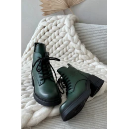 Dámské kožené kotníkové boty na klínu s vyhříváním Vinceza 39950 tmavě zelené