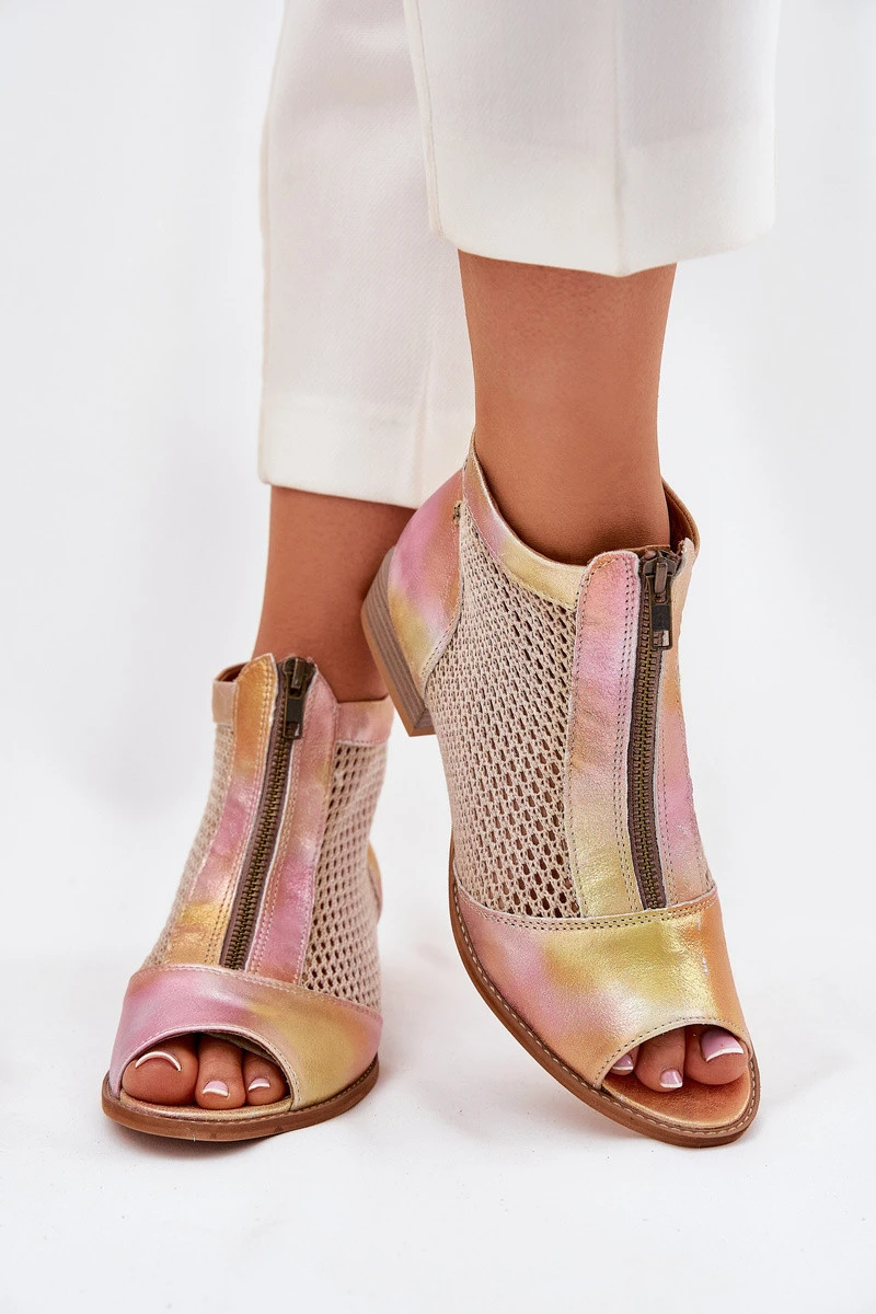 Dámské Kožené Kotníkové Boty Na Plochém Podpatku S Otevřenými Prsty Maciejka Růžovo-Oranžové 06413-15
