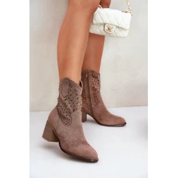 Stylové dámské boty vyrobené z vysoce kvalitního eko semiše. Uloženy na stabilním sloupkovém podpatku. Tento model vyniká perforovaným vzorem na svršku. Špičky mají mandlový tvar. Zapínání na zip zajišťuje pohodlí a snadné obouvání. Ideální na různé příležitosti, tyto boty budou stylovým doplňkem vašeho jarního šatníku. Při výběru velikosti se řiďte tabulkou velikostí.
