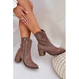 Dámské kožené kotníkové boty ve western stylu na podpatku S.Barski – hnědé