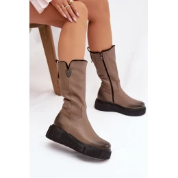 Tmavě béžové kožené kozačky Zazoo doporučujeme kombinovat s džínami, legínami nebo sukněmi, aby byl outfit stylový a nohy zůstaly v teple.