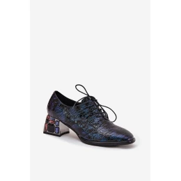 Dámské kožené lakované polobotky na podpatku s krystalky Artiker – tmavě modré