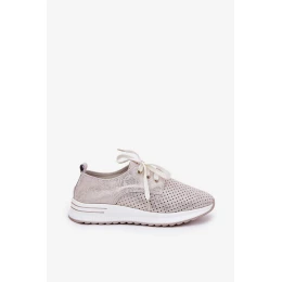 Dámské kožené lehké polobotky na platformě Artiker – béžovo/zlaté