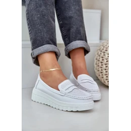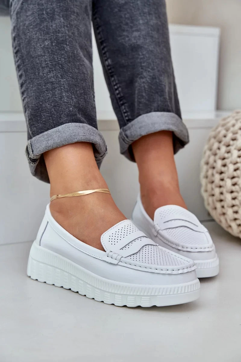 Dámské kožené mokasíny na platformě a klínku Elanindel – bílé