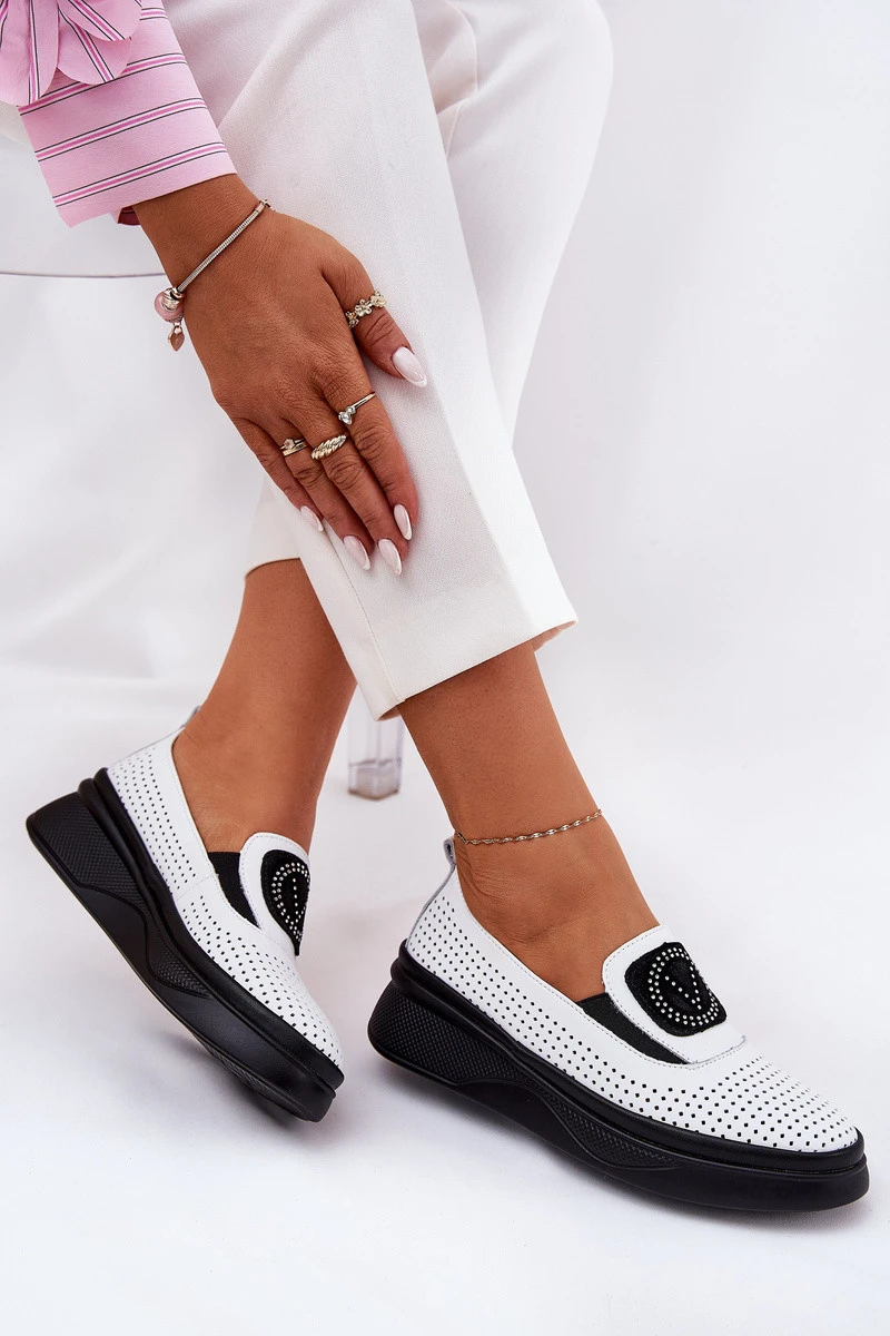 Dámské Kožené Mokasíny Na Platformě A Klínu Bílé Vinceza 79522