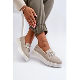 Dámské kožené mokasíny na platformě béžové S.Barski LR720