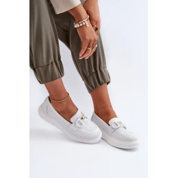 Dámské kožené mokasíny na platformě bílé S.Barski LR720