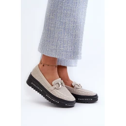 Dámské kožené mokasíny na platformě s ozdobou S.Barski LR750 béžové