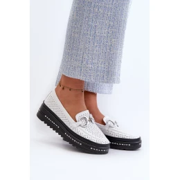 [Dámské kožené mokasíny na platformě s ozdobou S.Barski LR750 bílé]