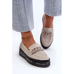 Dámské Kožené mokasíny Na Platformě S řetízkem S.Barski béžová