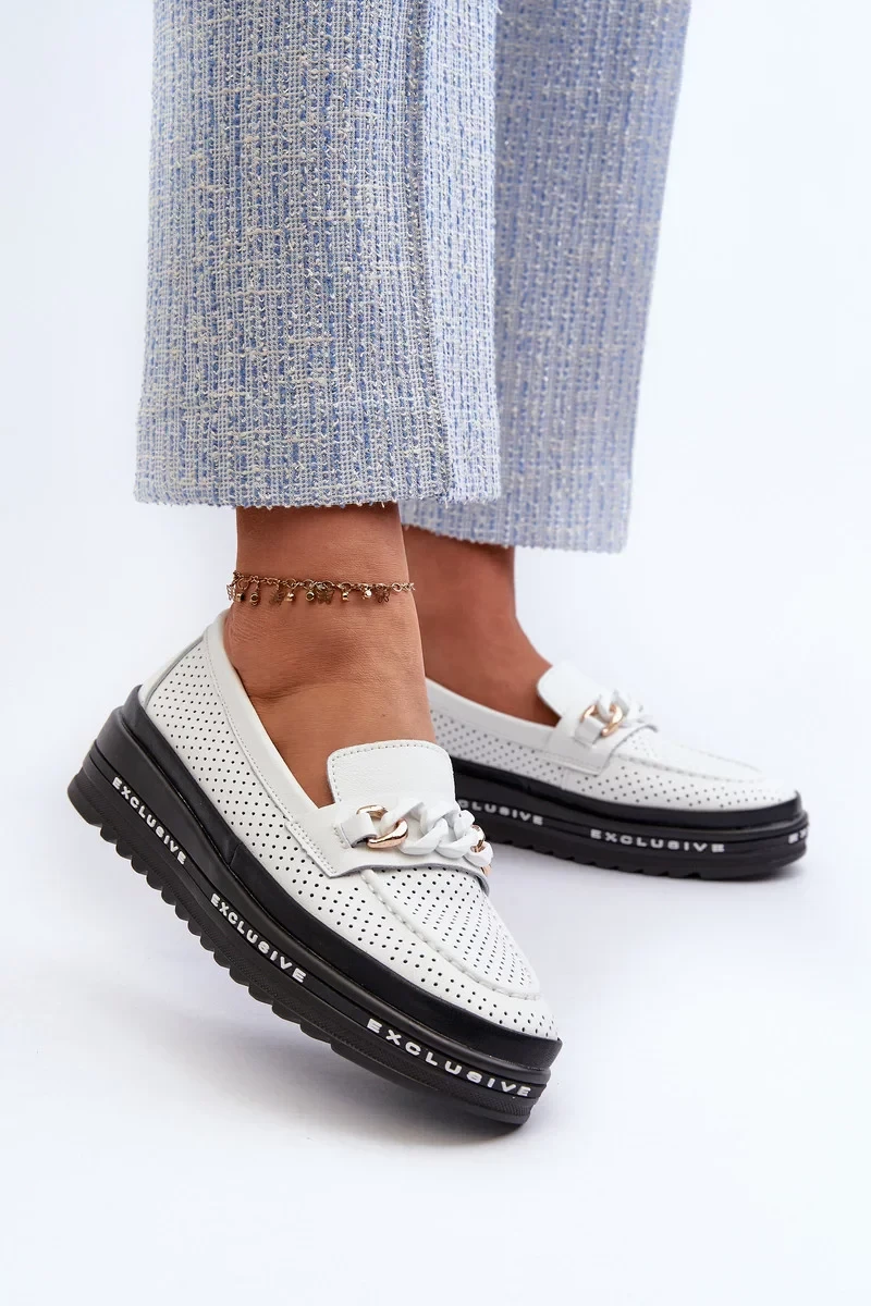 Dámské Kožené mokasíny Na Platformě S řetízkem S.Barski bílá