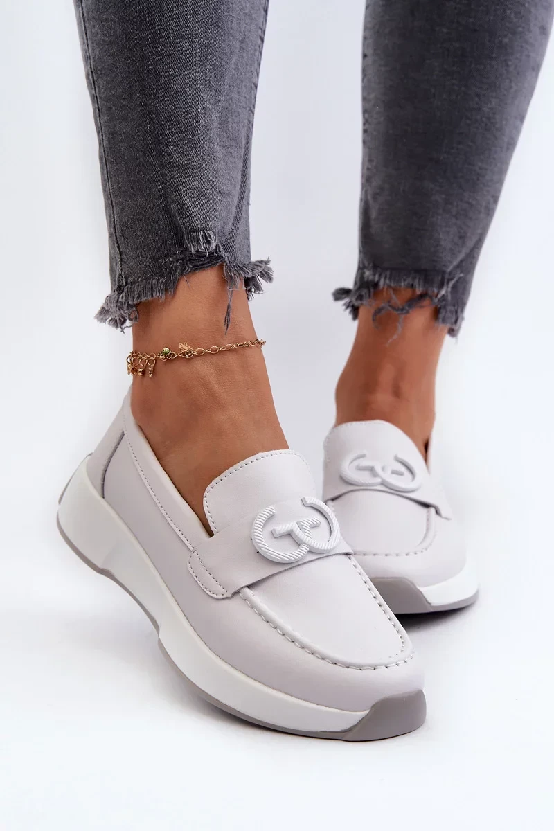 Dámské kožené mokasíny na platformě světle šedé S.Barski