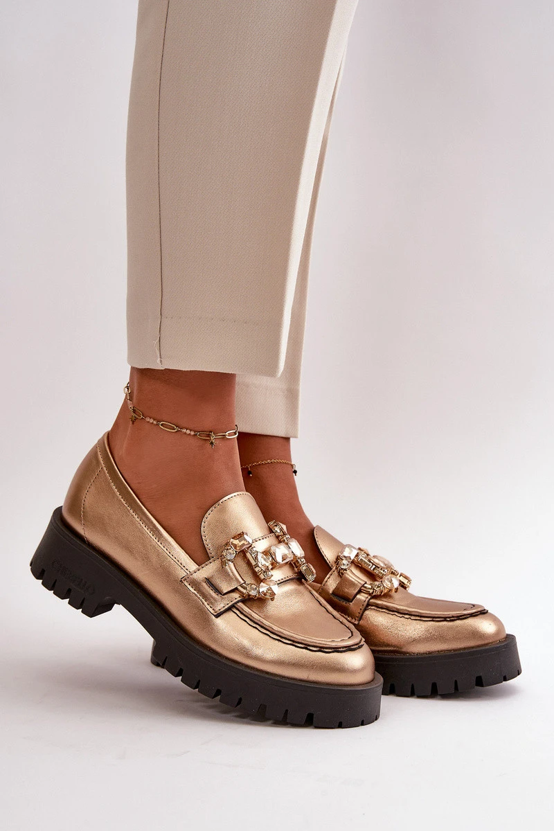 Elegantní mokasíny od značky CheBello. Vyrobeno z vysoce kvalitní přírodní kůže. Uloženo na plochém, masivním podpatku. Špičky jsou zaoblené. Tento model má ozdobu vpředu. Kožená stélka zajišťuje pohodlí při nošení. Tento střih dokonale doplní stylizaci s kalhotami, sukněmi a šaty. Určitě byste je měly mít ve své jarní garderobě. Při výběru velikosti se řiďte tabulkou velikostí.