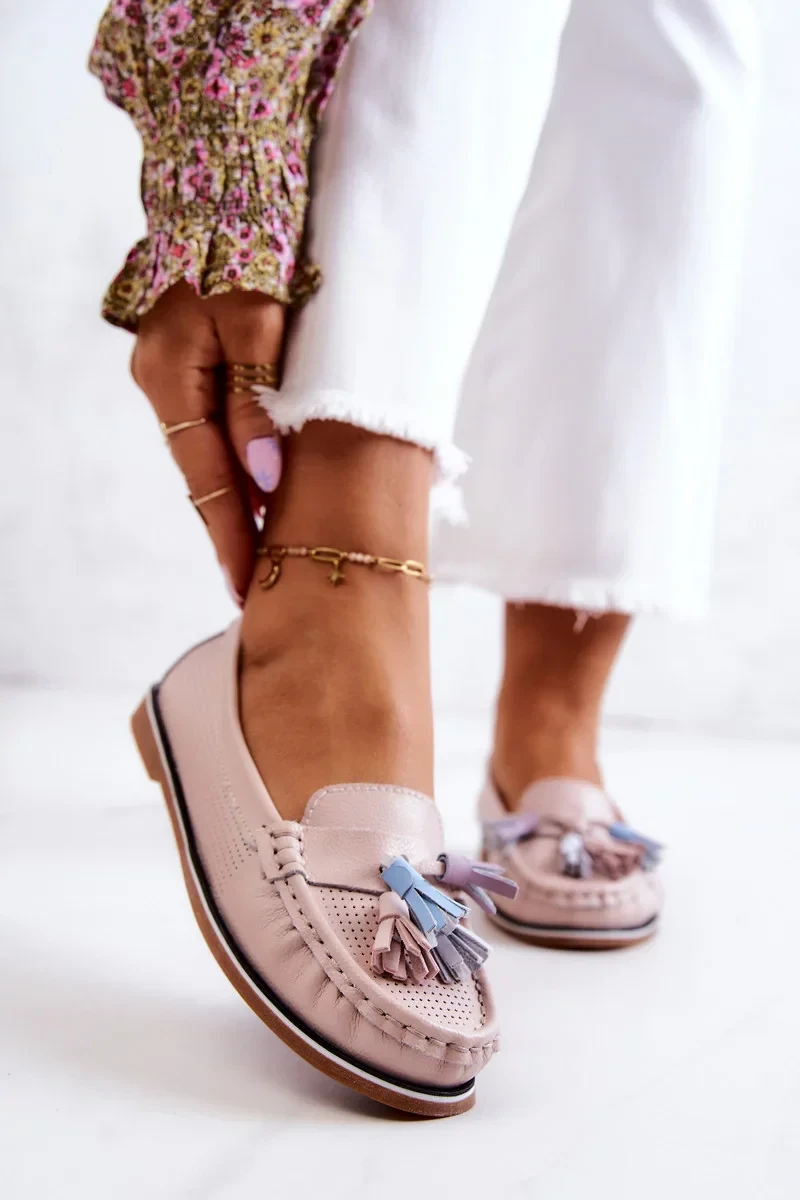 Dámské kožené mokasíny s třásněmi růžove Laressa