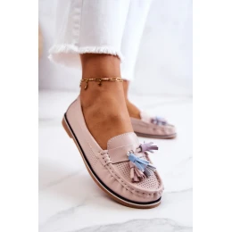 Dámské kožené mokasíny s třásněmi růžove Laressa