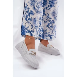 Dámské Kožené Mokasíny se Zlatým Detailem Jasnoszare Vinceza 88007