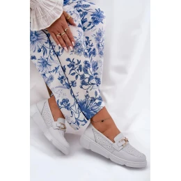 Dámské kožené mokasíny se zlatým detailem Vinceza – světle šedé