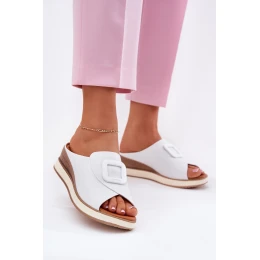 Dámské pantofle vyrobené z přírodní kůže jsou elegantním návrhem na teplejší dny. Upevněné na klínu, poskytují stabilitu a pohodlí po celý den. V přední části bot se nachází jemný ozdobný detail, který jim dodává výjimečný charakter. Měkká stélka se stará o pohodlí nošení a stylový střih zajišťuje, že pantofle budou dokonalým doplňkem letních stylizací. Při výběru velikosti se řiďte tabulkou velikostí.