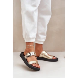 Dámské Kožené Pantofle Na Platformě Zazoo 3024 Zlaté