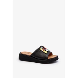 Dámské žabky jsou vyrobeny z přírodní kůže. Tento model má ozdobu na přední straně. Žabky jsou zasazeny na platformě a jemném klínku. Měkká stélka z přírodní kůže umožňuje pohodlné používání obuvi. Tyto zajímavě navržené žabky budou jistě dobře fungovat s mnoha styly! Musíte je mít ve svém letním šatníku! Při výběru velikosti se řiďte tabulkou velikostí.