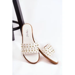 Jedinečné dámské pantofle s módními ozdobnými cvočky. Vyrobeno z eko kůže. Měkká stélka Comfort Shoes z eko kůže je velmi pohodlná na používání. Pantofle mají kolem podrážky jemný ornament. Nos je otevřený, zaoblený. Nasazené na plochém podpatku, s podrážkou z plastu. Solidní model, ideální na letní dny! Při výběru velikosti použijte tabulku velikostí.