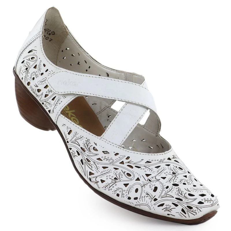 Dámské kožené polobotky na podpatku bílé Rieker 43773-80