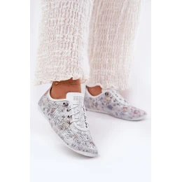Dámské Kožené Polobotky Z Přírodní Kůže Vzorované Artiker 56C2688 Bílé