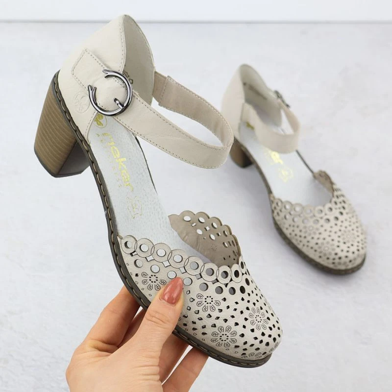 Dámské kožené sandály na jehlovém podpatku béžové Rieker 40902-60