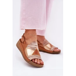 Dámské Kožené Sandály Na Klínku S Tkaninou Maciejka L7067-29 Hnědé