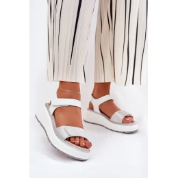 Dámské Kožené Sandály Na Platformě A Klínu Na Suchý Zip S.Barski LR51-543 Stříbrné