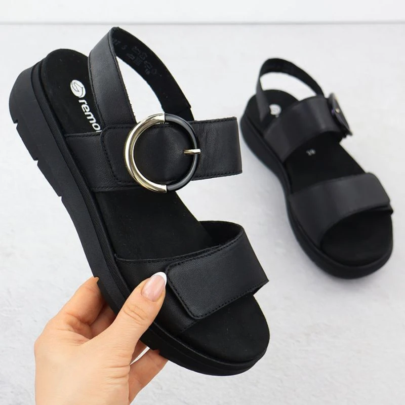 Dámské kožené sandály na platformě černé Remonte D2K50-00