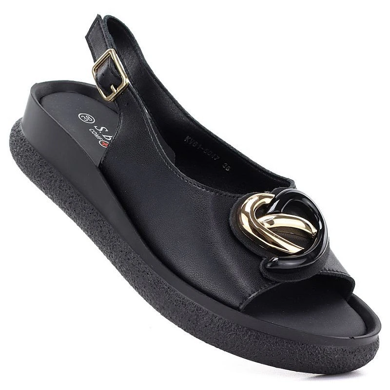 Dámské kožené sandály na platformě černé S.Barski 61-6047