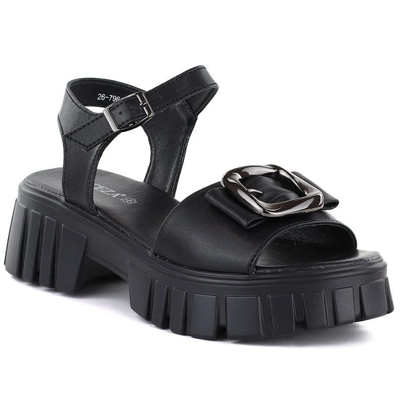 Dámské kožené sandály na platformě se zdobením černé Vinceza 26-79611