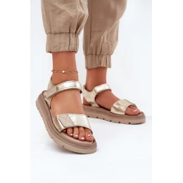 Dámské kožené sandály na platformě zlaté Zazoo 40443