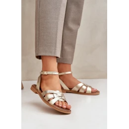 Dámské kožené sandály na plochém podpatku Zazoo 3688 zlaté