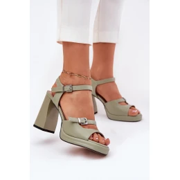 Dámské kožené sandály na podpatku Vinceza 77110 zelené