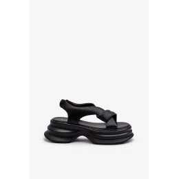 Dámské kožené sandály na robustní podrážce černé GOE
