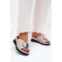 Dámské pantofle značky S.Barski. Vyrobené z přírodní kůže. Umístěné na platformě s klínem. Vyznačují se ozdobným detailem vpředu. Vložka Comfor zajišťuje pohodlí a dokonalou amortizaci po celý den. Trendy a elegantní střih, který určitě sladíte s mnoha stylizacemi! Při výběru velikosti se řiďte tabulkou velikostí.