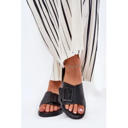 Elegantní dámské pantofle z přírodní kůže, usazené na plochém podpatku, které spojují pohodlí s jednoduchým stylem. Vpředu velká spona, která jim dodává výjimečný charakter. Kožená stélka zajišťuje pohodlí po celý den a dbá na správnou amortizaci. Dokonalé na letní dny, tyto pantofle budou ideální volbou pro každodenní stylizace, přinášející do nich lehkost a eleganci. Při výběru velikosti se řiďte tabulkou velikostí.