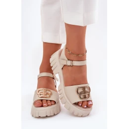 Dámské Kožené Sandály Se Zlatým Detalem Vinceza 79541 Béžové