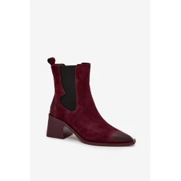 Dámské kožené semišové kotníkové boty na podpatku – bordó Artiker, zateplené