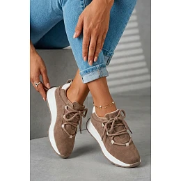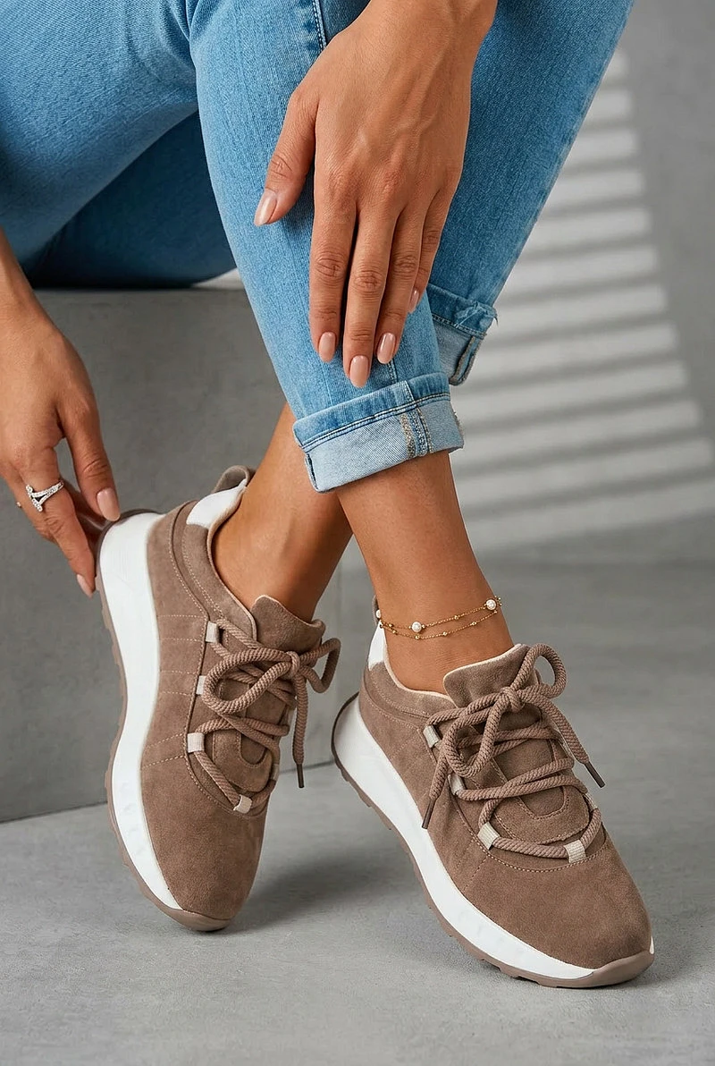 Dámské tenisky vyrobené z přírodního semiše jsou stylovou a pohodlnou volbou pro každodenní outfity. Měkký semiš dodává elegantní vzhled a zároveň zajišťuje komfort při nošení. Model je postaven na platformě, která jemně zvyšuje siluetu a zvyšuje pohodlí při chůzi. Tenisky se vyznačují silnými šňůrkami, které tvoří zajímavý dekorativní prvek a zdůrazňují moderní styl obuvi. Boty mají koženou vložku Comfort Shoes, která poskytuje vhodný komfort a dobře se přizpůsobí noze. Díky lehké konstrukci je model skvělý pro každodenní nošení a hodí se k mnoha stylům – jak s džíny, tak s kalhotami z textilu nebo sportovními soupravami. Při výběru velikosti se řiďte tabulkou velikostí.