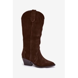 Dámské kožené semišové zateplené kovbojky Urselle – čokoládové