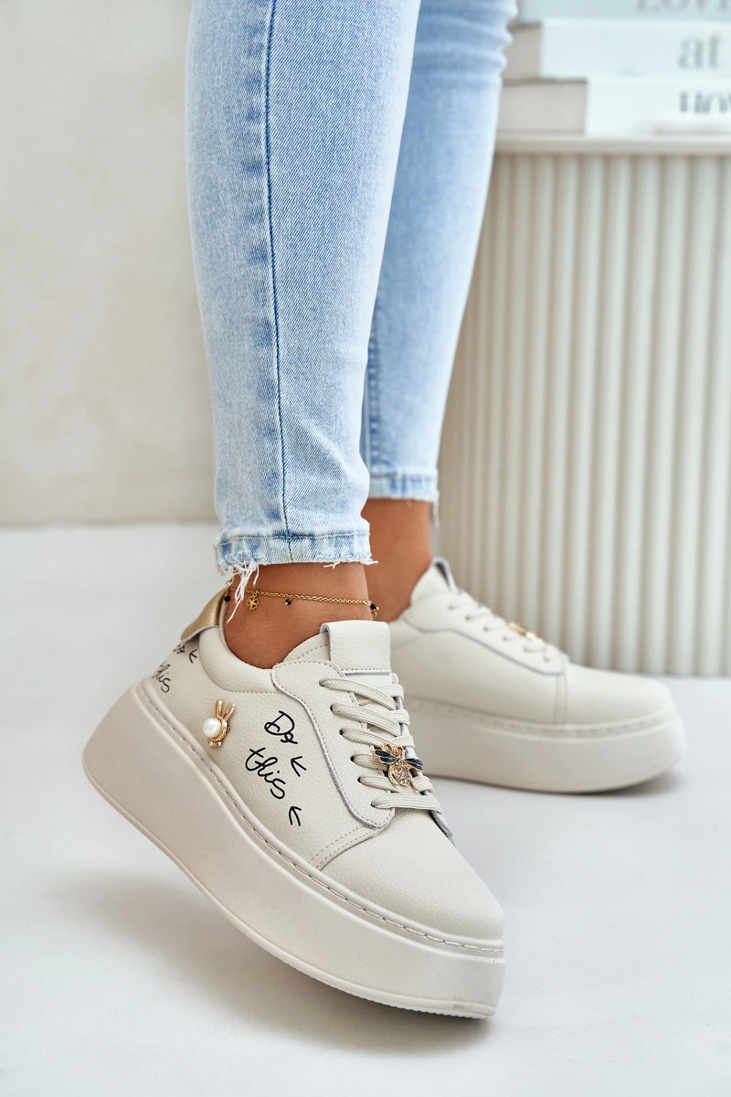 Dámské Kožené Sneakersy Na Platformě S Přišitými A Nápisem Vinceza 89102 Béžové