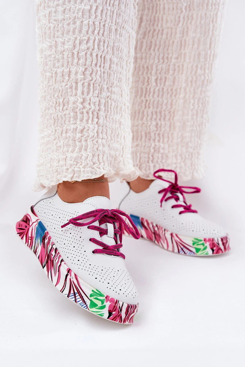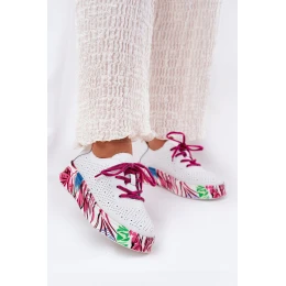 Dámské Kožené Sneakersy Na Vzorované Platformě Vinceza 88017 Bílé