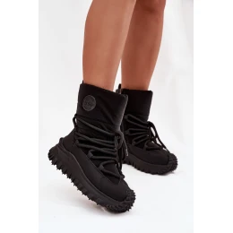 Černé sněhule se dobře kombinují s tmavými džíny, legínami nebo kabátem. Platforma dodá outfitu moderní vzhled.