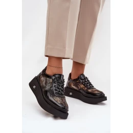 Dámské kožené šněrovací polobotky na platformě Artiker – černo/zlaté